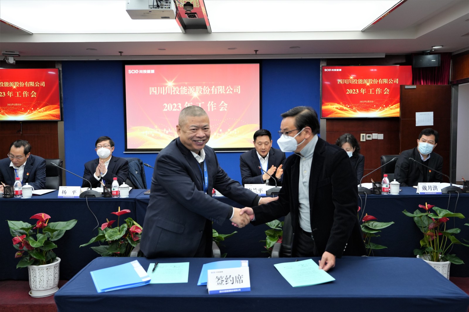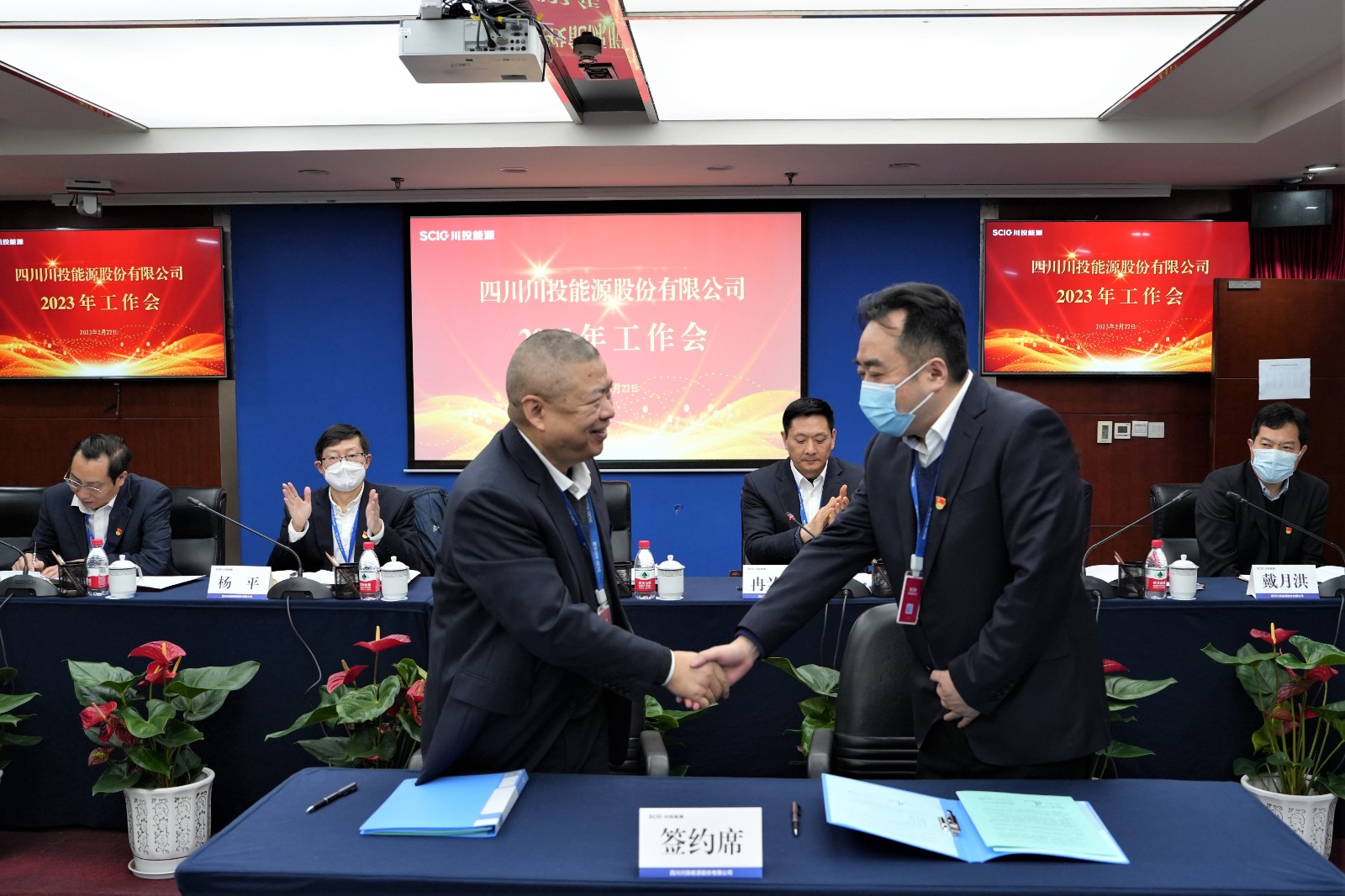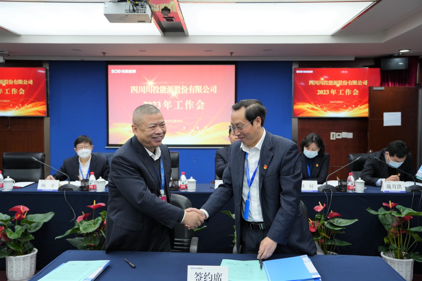 會上,楊洪與所屬企業(yè)負(fù)責(zé)人代表簽署了《經(jīng)營業(yè)績責(zé)任書》《安全生產(chǎn)、環(huán)境保護(hù)工作目標(biāo)責(zé)任書》;冉蘭平宣讀2022年度優(yōu)秀員工表彰通報;黨委委員、副總經(jīng)理、總法律顧問楊平作2022年安全環(huán)保工作總結(jié)及2023年重點(diǎn)工作安排;黨委委員、財(cái)務(wù)總監(jiān)劉好傳達(dá)川投集團(tuán)2023年工作會精神。