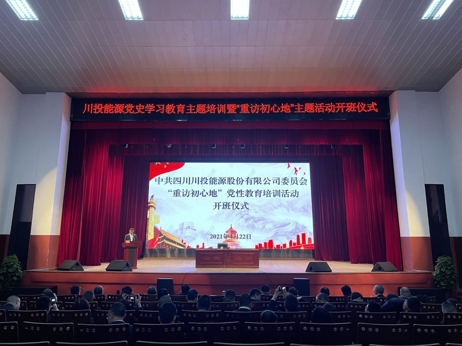 為推動黨史學習教育落地落實,不斷提升全體黨員干部黨性修養,按照“黨史學習教育”工作安排部署,4月21日-23日,川投能源黨委在嘉陽黨性教育基地開展了2021年黨史學習教育專題培訓暨“重訪初心地”主題活動,公司本部全體黨員、各所屬企業黨員領導人員、黨建工作人員、優秀黨員代表共百余人參加。