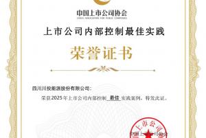 川投能源榮獲上市公司協會評選的內部控制最佳實踐案例
