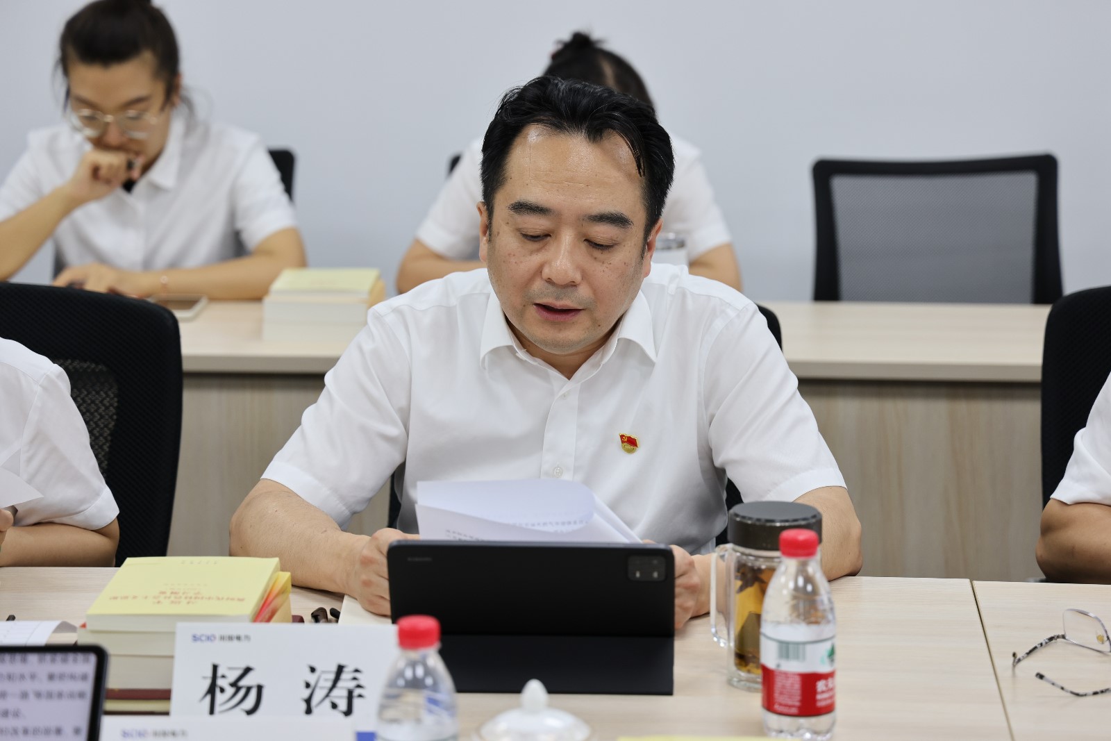 會上,公司領導班子成員分別領學了習近平總書記在中央全面深化改革委員會第二次會議上關于建設更高水平開放型經濟新體制,推動能耗雙控逐步轉向碳排放雙控的重要講話、《黨的二十大報告》《習近平著作選讀》以及《習近平新時代中國特色社會主義思想學習綱要(2023版)》相關內容。