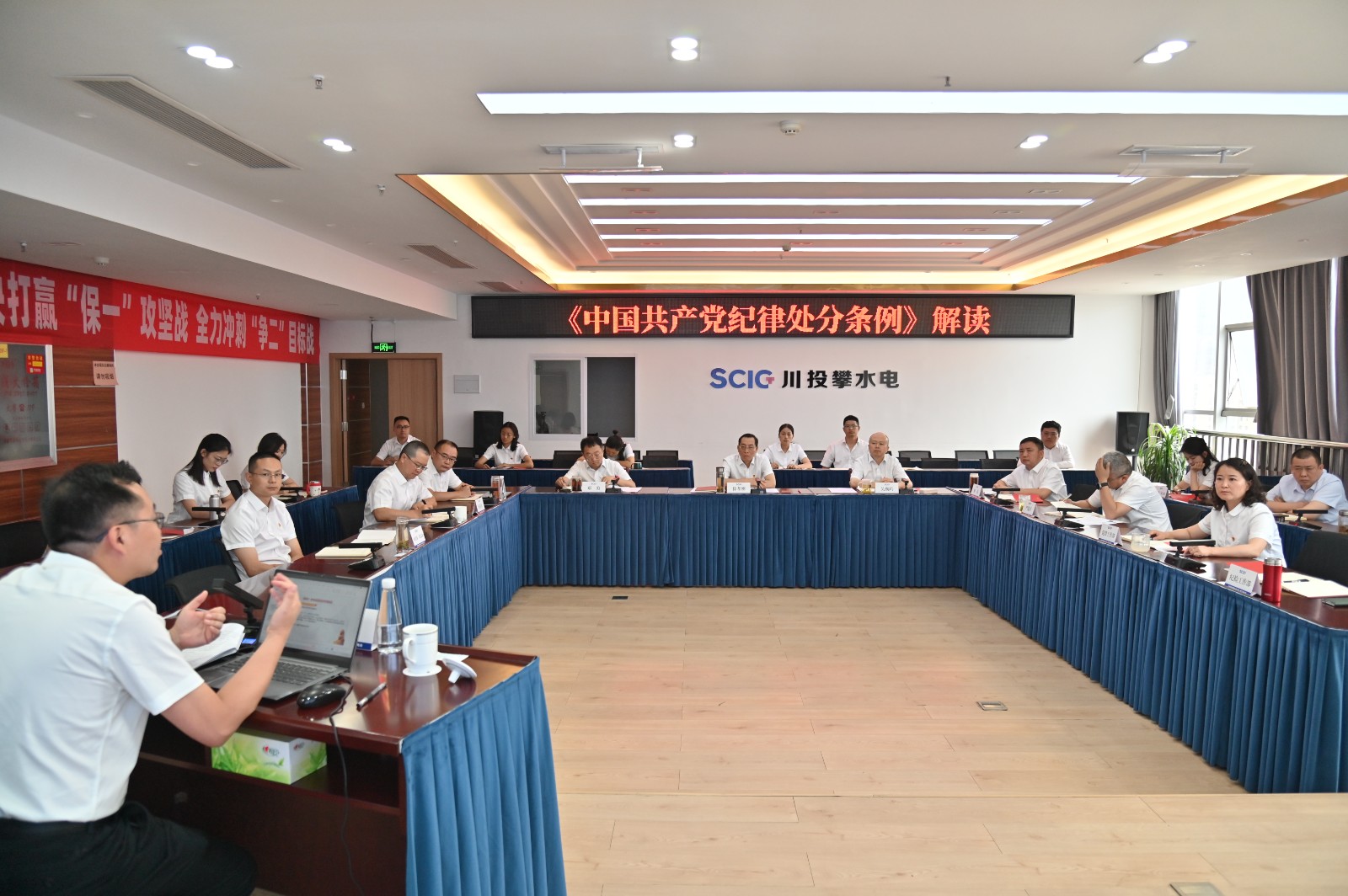 為深入學習貫徹習近平總書記關于加強黨的紀律建設的重要論述和黨紀學習教育的重要講話指示精神,系統(tǒng)學習新修訂的《中國共產(chǎn)黨紀律處分條例》,5月9日至11日,攀水電黨總支舉辦黨紀學習教育讀書班,川投能源副總經(jīng)理、攀水電黨總支書記、董事長徐孝剛等公司領導班子成員參加。
