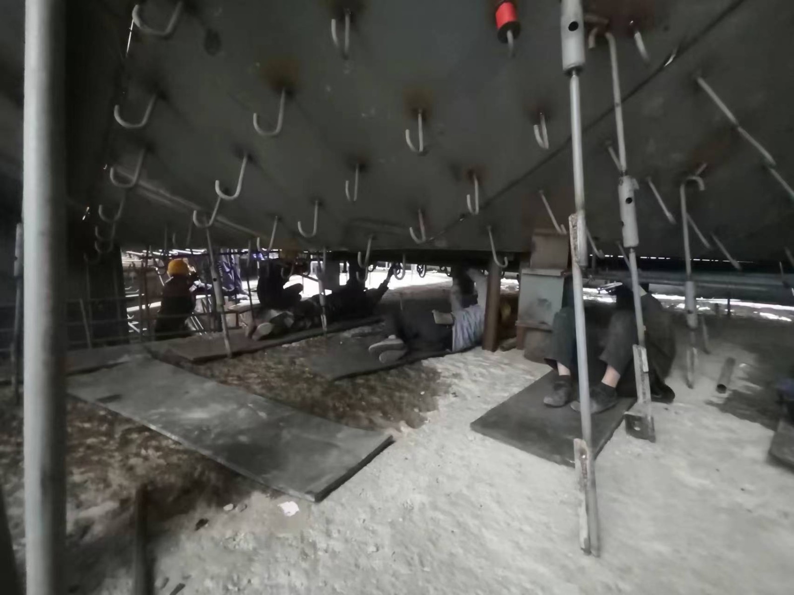 4號機組管形座二期混凝土施工的作業(yè)面最狹窄之處寬度僅0.8米,加之管形座上游里襯背面布滿錨鉤,實際可供作業(yè)的空間不足0.6米。在這樣艱難的條件下,作業(yè)工人憑借精湛的技藝與頑強的毅力,在狹小空間內靈活輾轉騰挪,順利完成了近100噸鋼筋的制作安裝和3000立方米混凝土的澆筑任務,創(chuàng)造了類似機組管形座二期混凝澆筑進度新標桿。