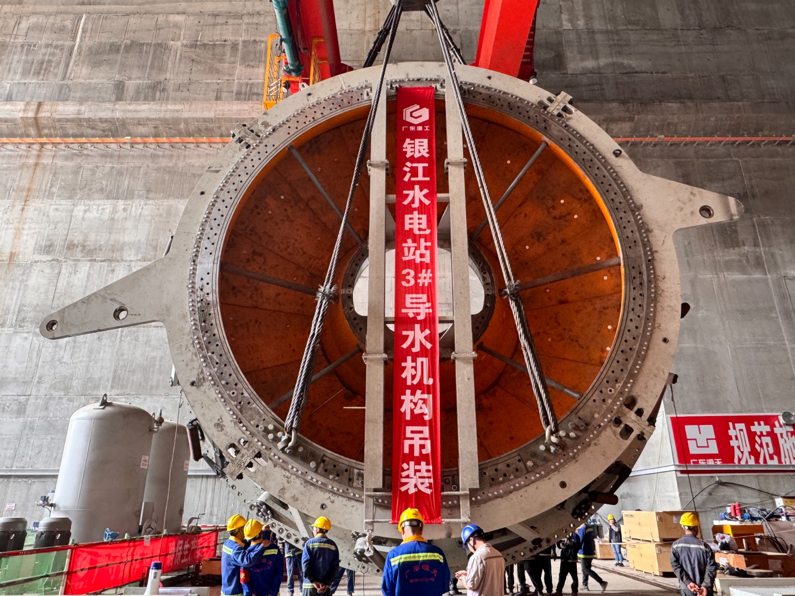 當前,銀江水電站已進入?2025年安全度汛目標沖刺攻堅期?,各項工作都在全力穩(wěn)步推進,3號機組的導水機構、主軸等關鍵部件已陸續(xù)吊裝到位,預計5月底前將具備過流條件;同時三期工程11號至13號壩段的混凝土澆筑工作正熱火朝天地快速推進。下一步,銀江水電站將錨定“安全度汛、全部投產”?雙核心目標,聚力攻堅、加壓奮進,一是堅持?黨建引領聚合力?,統(tǒng)籌協(xié)調全體建設者及參建各方,構建“黨員先鋒隊+青年突擊隊+技術攻堅”三級聯動機制。二是嚴守?質量安全雙紅線?,嚴格落實防汛應急預案與施工標準化體系,對關鍵部位實施“網格化”巡查管控。三是聚焦?機電安裝攻堅戰(zhàn)?,以“日跟蹤、周調度、月考核”機制全力推進剩余4臺機組安裝工作,以“倒排工期、掛圖作戰(zhàn)”?的沖刺態(tài)勢,確保實現2025年底全部機組投產發(fā)電目標任務。