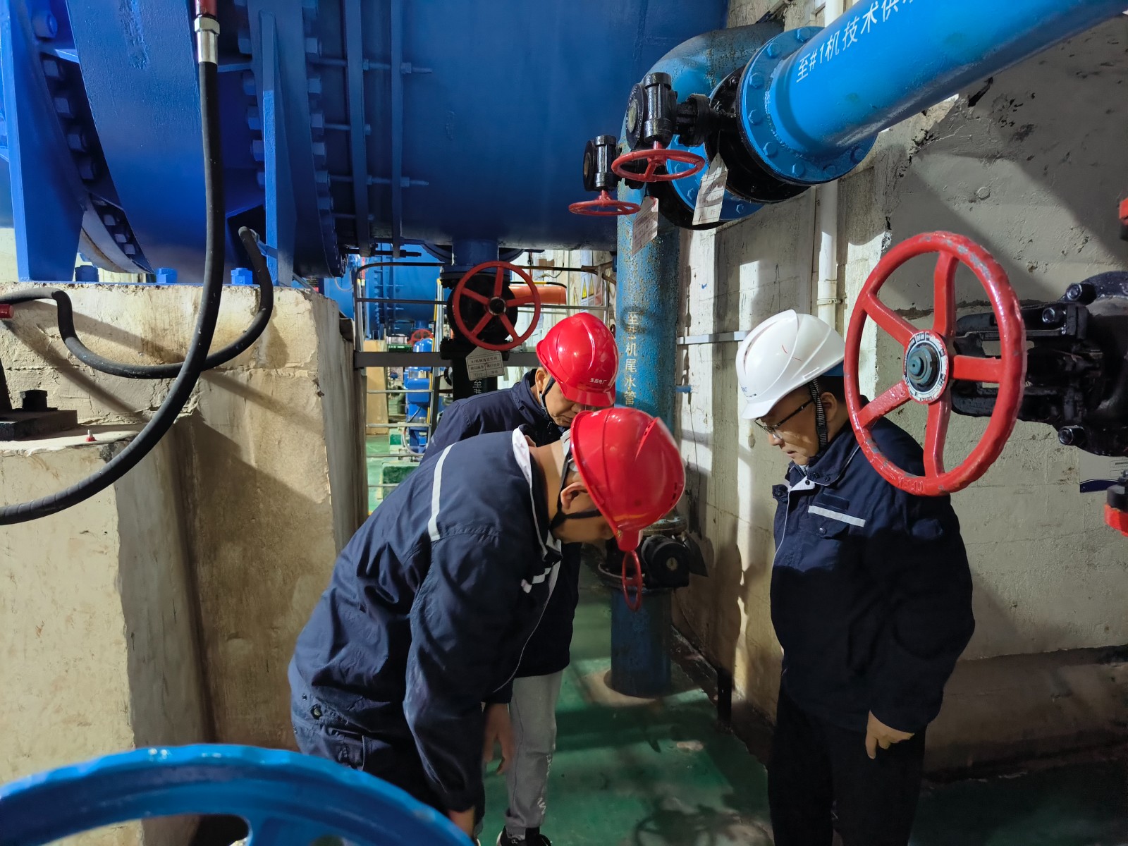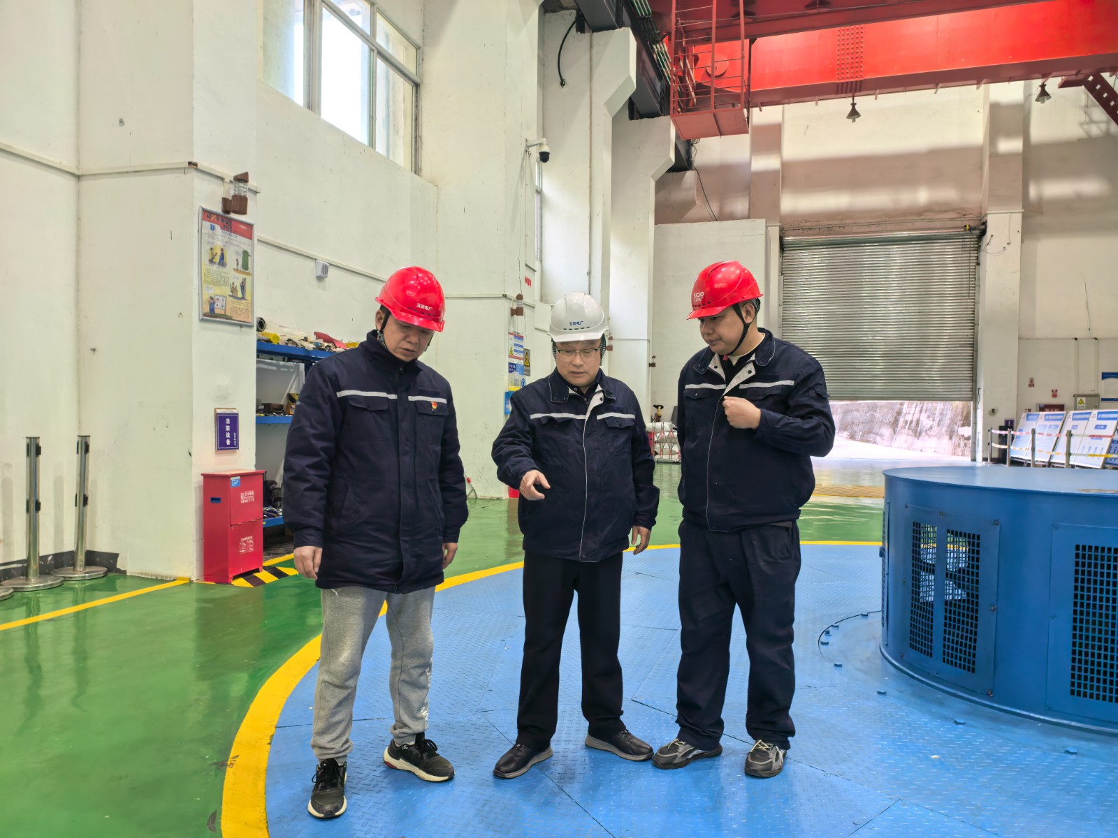 隨后,蔡承德一行深入玉田電廠中控室、發電機層、水輪機層、蝶閥層、消防技改等重點區域,通過現場查勘、臺賬調閱、人員問詢、應急演練抽查等方式,對安全生產責任制落實、雙重預防機制運行、消防與特種設備管理、外委項目管理、兩票制度落實、今冬明春自主檢修準備工作等關鍵環節進行逐項核查。針對發現的問題,現場簽發《整改告知單》,明確責任人、整改措施與閉環時限,確保隱患動態清零。