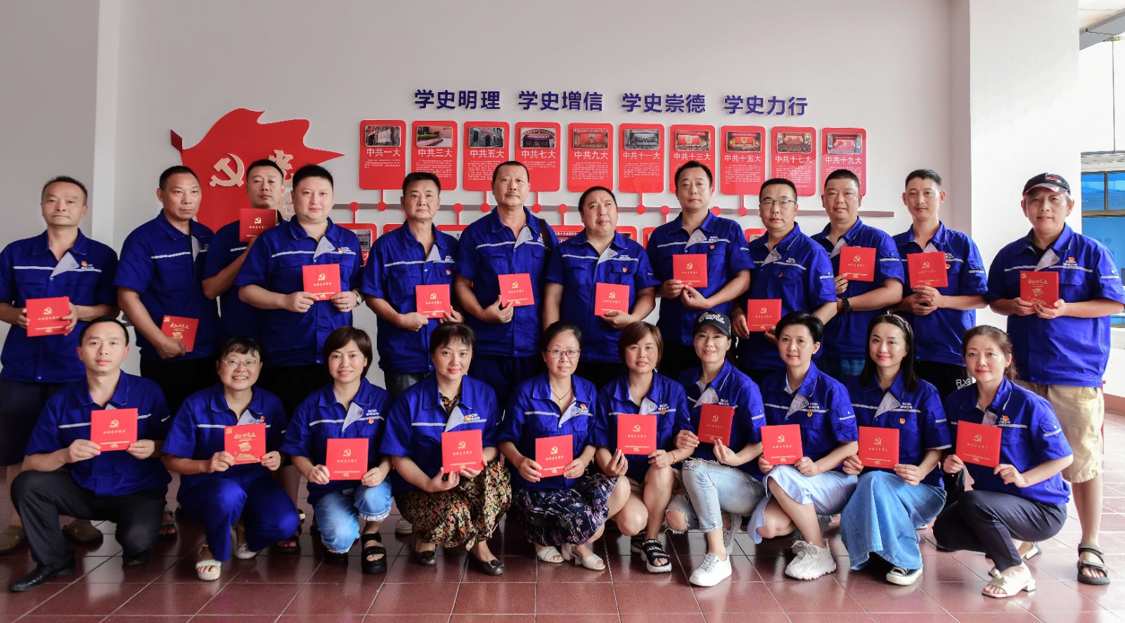 最后全體黨員帶著建黨100周年“政治生日”賀卡集體合影留念。